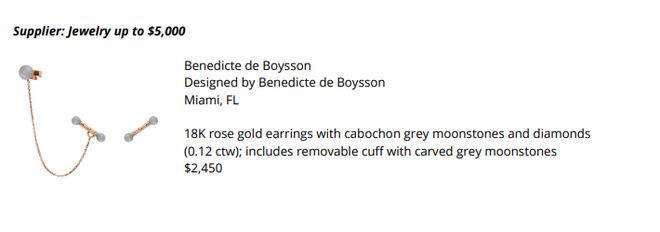 而Benedicte de Boysson却大胆地跳出了这个框架,一侧的耳环用一根链条将上下两部分连起,两头点缀的灰色月光石圆珠,颜色淡雅、低调,零星点缀的小克拉钻石,则为整体造型增添一丝时尚感。