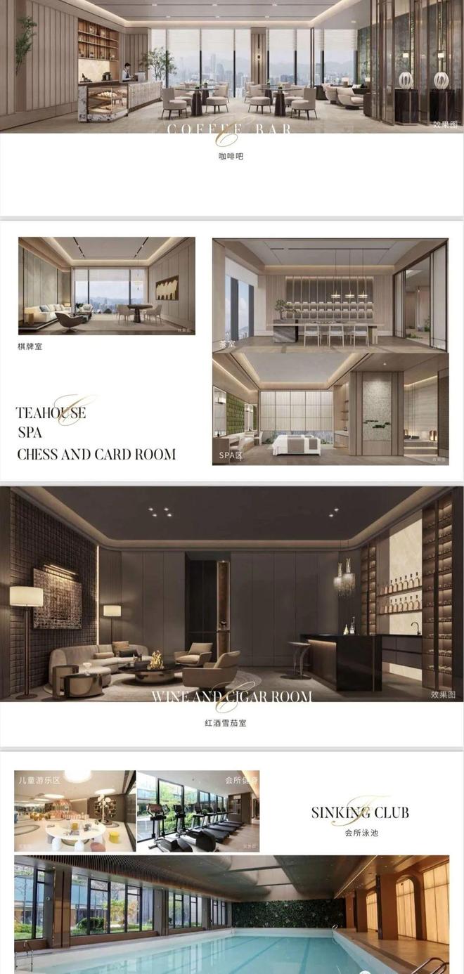 双会所:中央公园会所和公馆商务会所,中央公园会所里面有泳池、健身房、瑜伽室、儿童游乐园和休息区;而公馆商务会所则是上流社会的社交场,有咖啡区、品茗区、spa区、红酒雪茄、ktv、会议室私宴厅等。