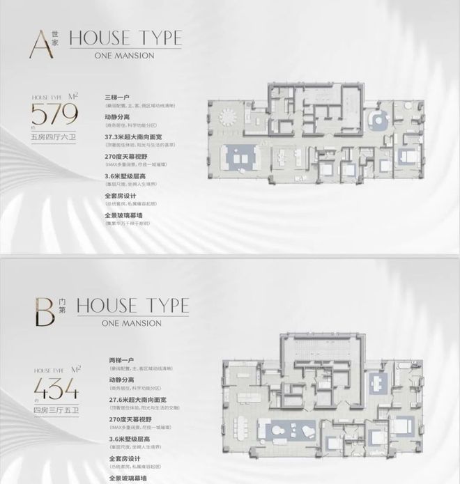 占地面积6000方,建筑面积3.2万方,地上2.1万方,地下1.1万方,容积率3.5,绿化率25%,车位配比1:3。1号楼579平一层一户大平层,2号楼434平一层一户大平层,共计35席。